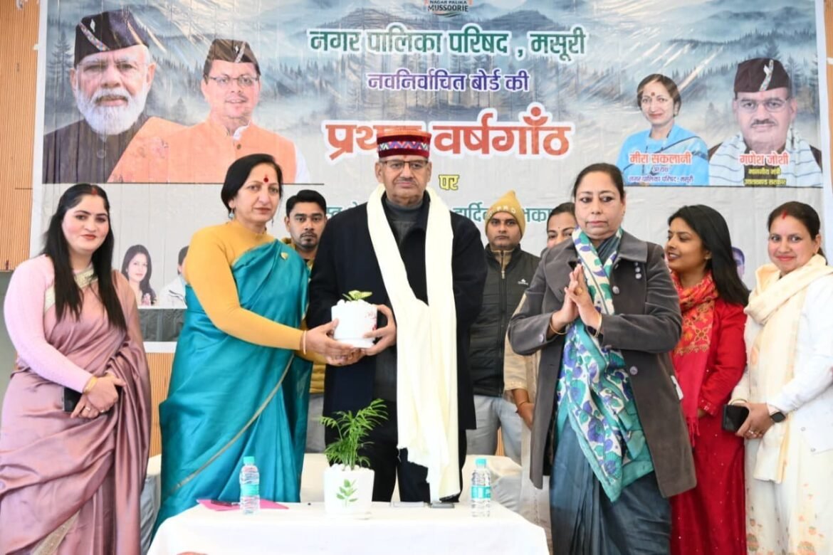 मसूरी। कैबिनेट मंत्री गणेश जोशी ने आज मसूरी स्थित टाउन हॉल में नगर पालिका परिषद के नव-निर्वाचित बोर्ड की प्रथम वर्षगांठ के अवसर पर आयोजित कार्यक्रम में प्रतिभाग किया। कार्यक्रम के दौरान नगर पालिका परिषद द्वारा बीते एक वर्ष की उपलब्धियों एवं आगामी प्रस्तावित विकास कार्यों का विस्तृत प्रस्तुतीकरण दिया गया। प्रस्तुतीकरण में नगर क्षेत्र में किए गए एवं प्रस्तावित कार्यों में आरसीसी सड़क मार्गों एवं आंतरिक सड़कों का निर्माण, सुरक्षा रेलिंग, सार्वजनिक शौचालयों का निर्माण, प्याऊं की सुविधा, टाउन हॉल का सुदृढ़ीकरण, वार्डों में सामुदायिक भवनों का निर्माण, पथ प्रकाश लाइट, हाई मास्क लाइट सहित अन्य जनहितकारी कार्य शामिल रहे।