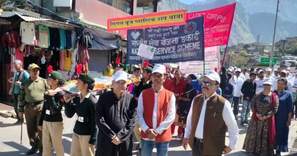 गोपेश्वर (चमोली)। स्वच्छता ही सेवा पखवाड़ा एवं इंडियन स्वच्छता लीग  2.0 के तहत शुक्रवार को नगर पालिका परिषद जोशीमठ की ओर से ‘सिंगल यूज प्लास्टिक की शव यात्रा’ निकाली गई। जिसमे प्रतिबंधित सिंगल यूज प्लास्टिक के प्रति जनता को जागरूक किया गया और जोशीमठ में सिंगल यूज प्लास्टिक का अंत हो चुका है यह संदेश दिया गया।
