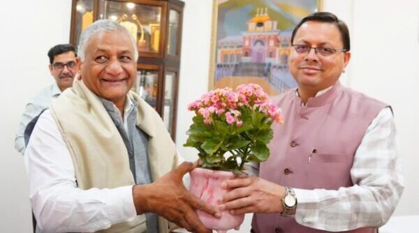 देहरादून : मुख्यमंत्री पुष्कर सिंह धामी से रविवार को मुख्यमंत्री आवास स्थित मुख्यमंत्री कैम्प कार्यालय में केंद्रीय सड़क परिवहन राजमार्ग एवं नागर विमानन राज्यमंत्री जनरल (डॉ.) वी.के. सिंह (से.नि.) ने शिष्टाचार भेंट की। इस अवसर पर उन्होंने राज्य से संबंधित विभिन्न सम सामयिक विषयों पर मुख्यमंत्री से चर्चा की।